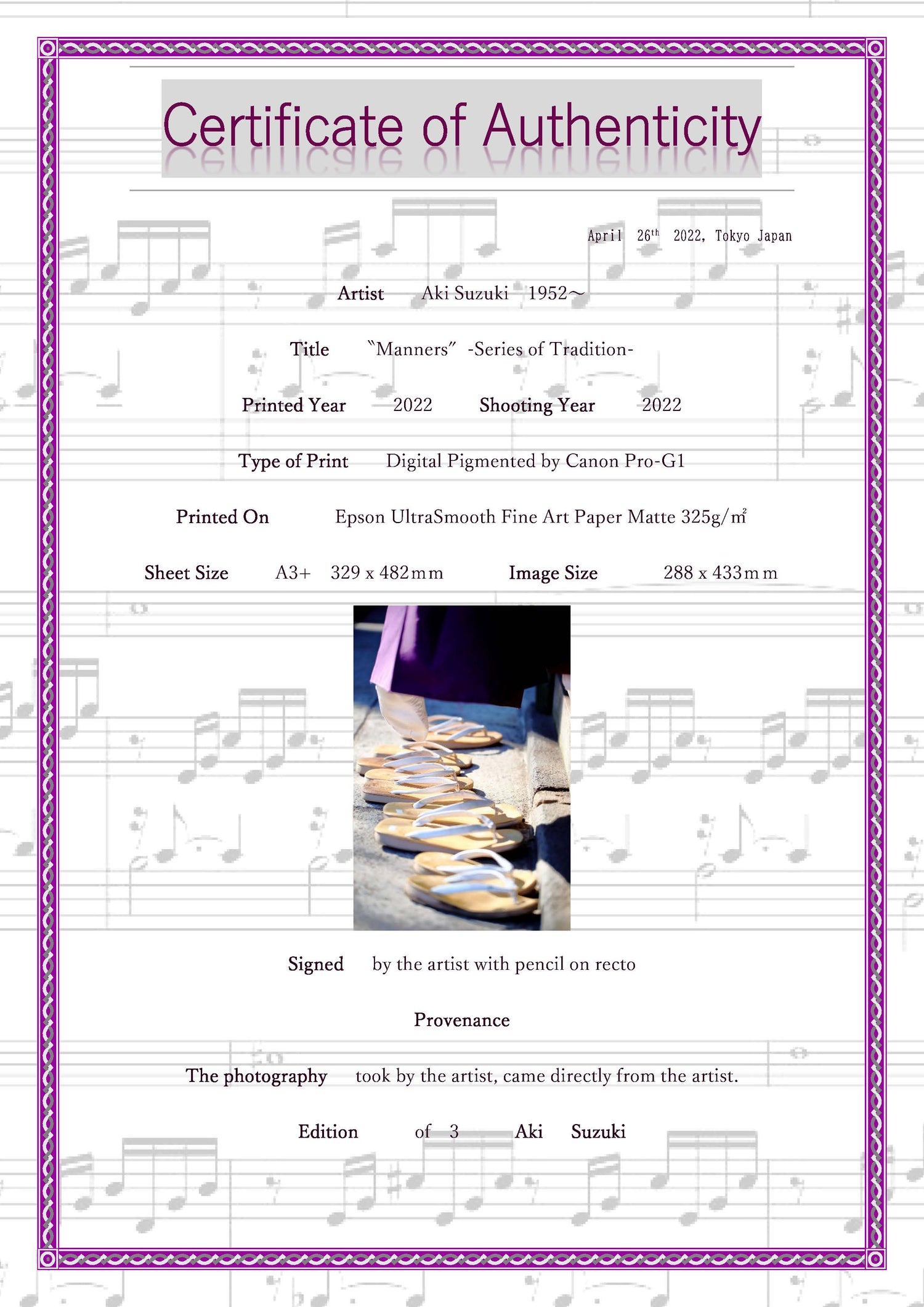 サイン入り / エディション証明書付き